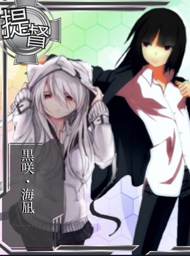 『海凪提督』 右側に写ってる2人目、黒咲提督の妹 《変わらない所》 性別、立場、番号、黒コート 《黒咲提督との違い》 常にフードを被ってる、フリーダムじゃない気がする、身長が低い(143程しかない)、姉とは違い胸がある、料理が出来るが身長的な問題であまりしない(砂糖とか取るために背伸びとかしてたりしてうわなにをするやめ)、コートの下の服には横乳スリットがある(手を突っ込まないようにしましょう、腹パンされても知りません)、髪の毛で猫耳を編んでる(普段はフードを被っていて隠れてる)髪を解くと足首まで届く位長い、基本食べ物に釣られない